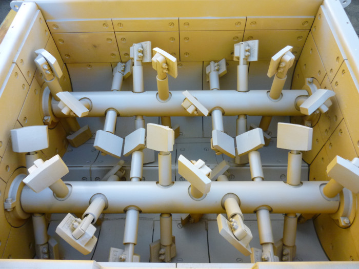 與日本德島大學(xué)共同研發(fā)的攪拌器具有以下特點:雙臥軸強制式攪拌器,長軸短臂,淺底結(jié)構(gòu)。內(nèi)部襯板、葉片采用高強度鑄鐵,耐磨,使用壽命長。攪拌器配有電加熱裝置,避免剛開機時缸冷和瀝青粘結(jié)。底門采用大型滑門,排料迅速。葉片實現(xiàn)三維空間的快速混合,提高拌和量和攪拌速度,從而使設(shè)備的生產(chǎn)能力得到了大幅提升。